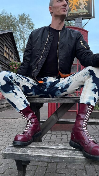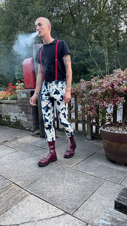 1. In '81 and onwards bleachers were all the rage for every Oi! Skin on the planet, in Europe shortly after the term Domestos Jeans was coined - using "domestos" bleach. Fast Forward to 2025 and Bleachers are still part of the mode. I have to say I personally have been making and selling bleachers for 20 odd years and still at it more than ever now with lads all across the globe buying - the only thing that has changed is the cost of shipping. Here are a few examples of my work my byline is: EVERY PAIR is an INDIVIDUAL